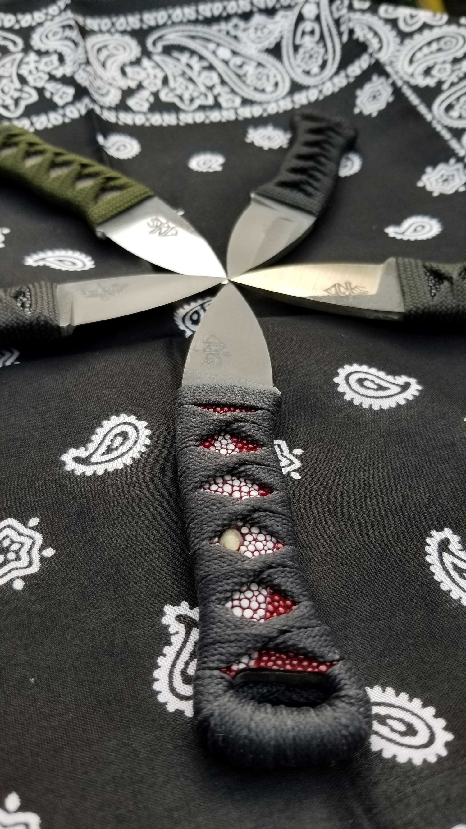 In this modern traditional blend Nylon ito is epoxied over stingray to create a unique, grip able durable handle